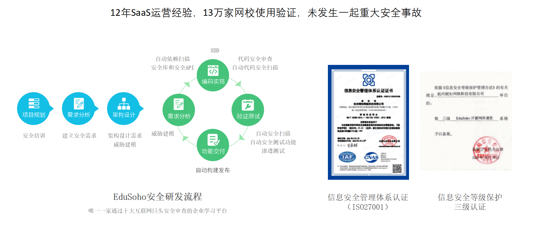 这“三重认证”环环相扣,构成了EduSoho安全感的基石。它告诉我们,安全不是一句口号,而是一系列严谨的流程、权威的认可和持续的行动。