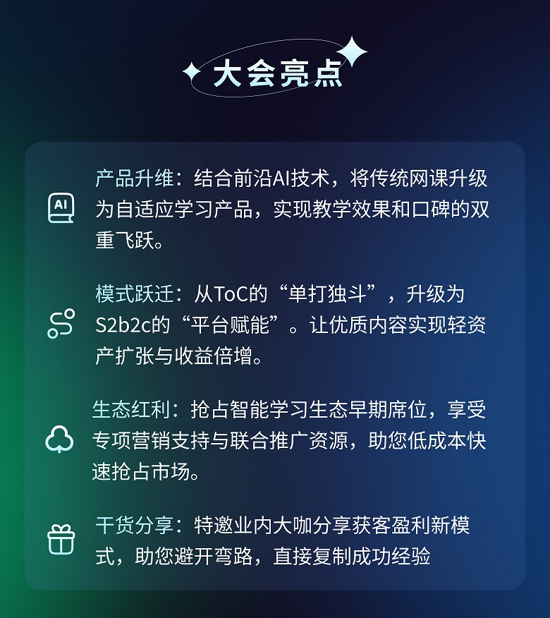 向下赋能:共建智能学习生态,让中小机构也能用上好产品,实现共赢。