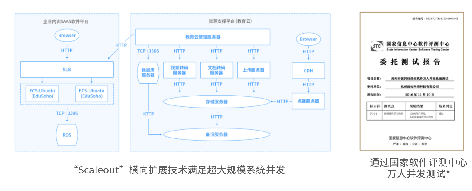 对于考试考证类机构,流量具有极强的“潮汐效应”。平时流量平稳,但在考前一周的冲刺押题直播时,流量可能瞬间暴增几十倍。EduSohoAI 采用了云原生架构(Cloud-Native)与弹性伸缩(Auto-scaling)技术。系统能够实时监控服务器负载,一旦检测到流量洪峰,能够在秒级单位内自动扩容计算资源,动态调配算力。这种“弹簧”般的架构能力,确保了即使万级学员同时在线刷题或观看直播,系统依然稳如磐石,彻底告别“崩服”带来的品牌危机